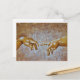 Diese Schöpfung von Adam (Hands) Postcard ist eine Interpretation des Originalgemäldes von Michelangelo (c.1508-1512). Dieses klassische Gemälde stammt aus dem Buch der Genesis und veranschaulicht, wann Gott Adam, dem ersten Mann, das Leben gab.