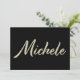 Eine personalisierte schöne und edle Karte / Grußkarte / Geschenkkarte / Geburtstagskarte im Handwriting liquid white gold Design für Michele.