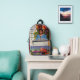 This original collage design backpack features Michelle Obama at a podium, layered with cut-out illustrations from chemistry, physics, and sociology textbooks.