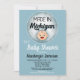Diese lustige Baby-Dusche lädt mit einem niedlichen, weißen Babygesicht ein, das auf blauem Hintergrund "Made in Michigan" steht. Das Bild ist auf Vorder- und Rückseite der Einladung.