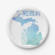 Bunte gemusterte Karte des US-Staat Michigan in einer Holzschnitt Grungeart