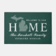 Das stilvolle Doormat "Welcome to our Zuhause" zeichnet sich durch ein typografisches Design mit Staat der Michigan-Karte aus. Personalisieren Sie die Monografie Ihres Familiennamen und den Namen Ihrer Stadt. Die Farben Grün und Weiß können individuell angepasst werden.