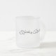 Mattierte GlasTasse, die ein Faksimile der Unterzeichnung Mickey Umhangs kennzeichnet. Autorisiert durch Umhang I.P. Holdings, Ltd.