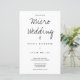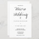 Eine Hochzeitseinladung auf Budget Papier für eine Mikro-Hochzeit. Diese leichtgewichtige Papiereinladung wird in Schwarz und Weiß gemacht, mit gerade genug Informationen, um den Tag zu gewinnen. Fügen Sie einfach Ihre Informationen hinzu, fügen Sie diese zu Ihrem Warenkorb, und genießen Sie Ihre kleine und intime Hochzeit. (Auch die Option Satinpapier ist sehr dünn und Halbglanzpapier wird vorgeschlagen.) (Die Sammlung enthält Versionen dieser Einladung zu schwereren, traditionelleren, Papiertypen) Micro Wedding Dusty Budget Paper Invitation Holidayday Design | ©Melissa Patton Designer