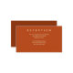 Eine Empfang-Informationskarte wird in Orange und Braun mit cremefarbener Typografie erstellt, die gerade genug Informationen enthält, um den Tag zu gewinnen. Dieser Artikel ist Teil einer Hochzeitskollektion, die Ihre Wahl der Einladung, eine RSVP-Karte, Save the Date und mehr beinhaltet. Legen Sie Ihre Informationen auf diese Karte, fügen Sie sie in Ihren Warenkorb, und eine wunderbare Hochzeit.