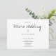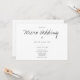 Eine horizontale Hochzeitseinladung für eine Mikro-Hochzeit. Diese Einladung wird in Schwarz und Weiß gemacht, mit gerade genug Informationen, um den Tag zu gewinnen. Fügen Sie einfach Ihre Informationen hinzu, fügen Sie diese zu Ihrem Warenkorb, und genießen Sie Ihre kleine und intime Hochzeit.