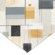 This mid century style pattern features orange, gray, and black geometric shapes against a beige background.