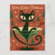 Mid Century Black Cat Merry Martini Christmas Postkarte