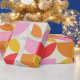Add bright retro vibes to your gift wrap with this wrapping paper featuring mid century abstract semi circles and circle leaf shapes pattern in bright colors like orange, mustard yellow, red and pink.