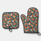 Mid-Century Geometric Teal & Orange Pattern Ofenhandschuh & Topflappen-Set