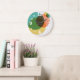 Bring a touch of artistic sophistication to your wall with this Mid-Century Modern Geometric clock. This design features a composition of overlapping circles and organic shapes in a curated retro palette of teal, mustard yellow, burnt orange, and olive green.