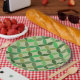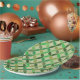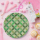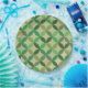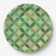 This is mid century modern geometric circles in different shades of green like olive, lime green, emerald green on light background. It's great looking papr plate for those who want to add retro vibes to their party decor