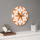 Mid-Century Modern Orange Geometric Floral Große Wanduhr