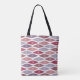Diese Tote-Tasche hat ein modernes Design von abgeflachten Diamanten in Retrotönen lila und rosa.