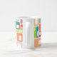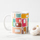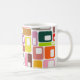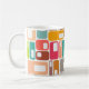 Diese Tasse hat ein modernes Design von Rechtecken mit einem weißen, in Retrofarben gehaltenen Loch.