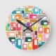 This clock has a mid-century modern design of rektecks with a white hole in retro colors.