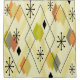 Dieses Retro-Atomzeitalter abstrakte Kunstdesign hat Diamanten und Sputnik-Sternexplosionen in Chartreuse und Orange.
