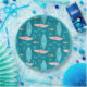 Mid Century Pink Catamaran - Blue Background Pappteller