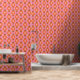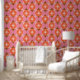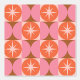 This is elegant mid century retro starbursts on orange circles with pink half circles on squares. It's great looking wallpaper for those who love retro goemetrics and mid mod style