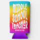 Keep your drinks cold with our stylish “Middle School Teacher” can cooler which you can personalize with your name. The design features a white typography design on a rainbow ombre background. This would make a great accessory for spring break or summer vacation. If you have questions or requests regarding this design, please contact us via the chat; we’d be happy to help!