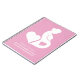Niedliches Marketing für Schwangere mit diesem wunderschönen Notizbuch mit einer zarten schwangeren Silhouette mit hübschen Herzen auf dem zarten rosa Hintergrund. Der Name der Firma und der Hebamme oder Doula für die natürliche Entbindungsarbeit und die Zustelldienste ist in einem schönen weißen Drehbuch für Ihr Unternehmen geschrieben.