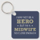 Ich bin vielleicht kein Held, aber ich bin eine Midfrau, die so nah genug humorvolle Wortkunst in Sans-Serif und doodle Cross-Luch-Schriftart in weiß und golden gelb schreibt.