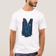 A lone figure walks through a rainy alley of glowing signs and wet pavement rendered in deep blue perspective