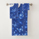 Blaue und weiße Schmetterlinge versetzen sich über einen blauen Hintergrund auf diesem wunderschönen Handtuch-Set. Ein Klassiker, der sowohl stilvoll als auch verträumt ist und für jeden, der Natur und Blume Liebe, perfekt geeignet ist.