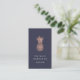 Elegante vertikale Visitenkarten mit einer Imitat-Rose Gold-Folie Ananas-Abbildung auf einem reichen Mitternachtsblauen Hintergrund mit zwei Zeilen Text in knusprig weiß. Passen Sie die Rückseite mit Ihren vollständigen Kontaktdaten an, die unter einer kleineren Ananas-Abbildung angezeigt werden.