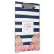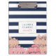 Diese Zwischenablage mit Marinestreifen, goldenen Imitaten und einer Gruppe von Fußbädern in hübschen Blütentönen. Koordiniert mit unseren Navy Stripe & Blush Peony Einladungssuiten, Büroartikeln, Zuhause-Artikeln und Zubehör. Passen Sie mit einem Monogramm, Namen oder Text Ihrer Wahl an!