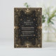 This elegant celestial design features intricate golden sunbursts, lunar motifs, and baroque flourishes on a deep black backdrop — perfect for couples who want a luxurious and mysterious wedding aesthetic. Inspired by vintage astronomy and royal decor, it captures the magic of the cosmos with timeless sophistication.
