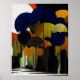 Chromantischer Mondaufgang im abstrakten Hain. Große, kreisförmige Baldachine in Blau, Orange, Gelb und Schwarz erheben sich über schlanke Stämme, jeder gefüllt mit komplizierter, aderähnlicher Linienarbeit, die dem Wald eine leuchtende, texturale Präsenz verleiht. Ein leuchtender weißer Mond verankert den Hintergrund, während vertikale lineare Elemente und gepunktete Bodentexturen natürliche und geometrische Motive zu einer surrealen, modernen Landschaft verschmelzen. Die Komposition fühlt sich sowohl organisch als auch architektonisch an und schafft eine reich geschichtete nächtliche Szene. Entwickelt im vielseitigen 4:5-Verhältnis, bringt dieser hochauflösende digitale Download leuchtende Kunstfertigkeit und handgefertigten Charme in jeden Raum, perfekt zum Einrahmen, Verschenken oder zur Aufwertung Ihrer