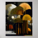 Midnight Canopies: A Celestial Abstract Forest. Circular and semicircular treetops in gold, orange, navy, and deep brown rise against a dark, starstudded sky, each canopy filled with intricate branching patterns that glow like illuminated constellations. Large moonlike orbs and geometric architectural shapes weave through the scene, blending nature with surreal structure. The artwork creates a richly textured, dreamlike forest that feels both cosmic and modern. Designed in a versatile 4:5 ratio, this highresolution digital download brings luminous artistry and handcrafted charm to any space, perfect for framing, gifting, or enhancing your home décor with vibrant garden elegance.#digitaldownload #AbstractForest #SurrealArt #GeometricNature #ModernIllustration