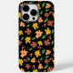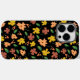 This phone case features a striking floral design set against a deep black background, creating a bold and elegant contrast. The flowers—painted in rich, earth tone hues like deep rust, pale peach, soft yellow—seem to glow against the dark backdrop.