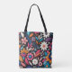 Lassen Sie den Tag mit dieser blühenden Tasche ausklingen! Mit einem illustrierten Muster von bunten Blüten und fetten Blätter auf einem tiefen Marineschirm ist diese Tasche zugleich fröhlich und elegant. Ideal für das Tragen von Büchern, Marktfunden oder Alltagsessenziellen, fügt es jedem Outfit einen Pop der Persönlichkeit hinzu. Lebhaft, auffällig und voller botanischer Charme - Ihr neues Accessoire für alle Jahreszeiten.