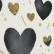 This elegant seamless pattern features a playful arrangement of hand-painted watercolor hearts in deep charcoal and black. Interspersed throughout are shimmering gold glitter accents, including smaller hearts and abstract geometric confetti. The textured off-white background gives the design a premium, fabric-like feel, making it an ideal choice for sophisticated nursery walls, chic bedroom accents, or creative DIY projects.