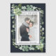 Diese Hochzeit speichert das Datum Foto Magnetkarte mit gemalten Aquarellfarben sukkulent, eucalyptus und botanisch grünen Blätter mit einem rechteckigen Rahmen auf einem dunkelblauen Hintergrund. Matching-Elemente sind ebenfalls verfügbar.