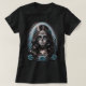 Vibrant tradition meets modern style. This women's t-shirt features a sugar skull design in striking shades of blue, black, and teal—a bold, artistic piece perfect for casual wear, cultural appreciation, or gifting to lovers of colorful symbolic art. DSE Graphics | Art with Attitude.