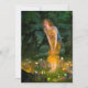 Karte mit Edward Robert Hughes Malerei Midsommer Eve (1908). Eine schöne Frau in einem goldenen Kleid steht inmitten eines Feenkreises. Kleine Feen halten farbenfrohe Lichter. Der Schleier zwischen der menschlichen Welt und der Märchenwelt ist am dünnsten während der Sommerferien. Ein wunderbares Geschenk für Märchenfreunde und britische Kunst.