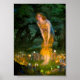 Poster mit Edward Robert Hughes Malerei Midsommer Eve (1908). Eine schöne Frau in einem goldenen Kleid steht inmitten eines Feenkreises. Kleine Feen halten farbenfrohe Lichter. Der Schleier zwischen der menschlichen Welt und der Märchenwelt ist am dünnsten während der Sommerferien. Ein wunderbares Geschenk für Märchenfreunde und britische Kunst.