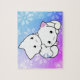 Streichelnde Cartoonkätzchen. Niedliche weiße Kätzchen, die mit einem blauen rosa Hintergrund streicheln.
