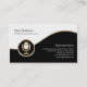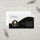 Diese berufliche Visitenkarte mit schwarz-weißem Segment, getrennt durch einen schweren Goldstreifen. Eine elegante goldene Ikone eines Mikrofons liegt auf der unteren links Seite des Designs, die sich in der Regel für Unterhaltung, Party, Veranstaltungen, Start, Zauberer, Entertainer, Sänger, Shows, Konzert, Abendthemen eignet.