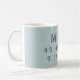 Stilvolle Kaffee-Tasse mit Mailand-Italien Breiten- und Längenkarte Koordinaten im modernen urbanen Schriftart