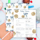 Ein kleiner Keks ist unterwegs! Party mit Duschkabine. Aquarellkekse mit Schokolade und Flaschenmilch mit blauem Bogen. ANTWORTSCHLÜSSEL: 1.d 2.d. 3.a 4.c. 5.c. 6.a 7b. 8.c 9.c. 10b.