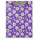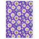 Ein farbenfrohes, nahtloses Muster mit Gängen mit gelben Mittelpunkten, blauen Blätter und einem lebendigen lila Hintergrund. Perfekt für Frühlingsthemen, Textilien und fröhliches Digital- oder Druckwerk.