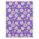 Ein farbenfrohes, nahtloses Muster mit Gängen mit gelben Mittelpunkten, blauen Blätter und einem lebendigen lila Hintergrund. Perfekt für Frühlingsthemen, Textilien und fröhliches Digital- oder Druckwerk.
