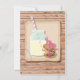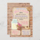 Rustikale Milch und Cookies Baby Dusche Einladungen mit lustigen Schriftart, Maurerkirsche, Strohhalm, stapeln Sie auf verschiedenen Keksen und Imitat Papier und Holzputz Hintergrund. Ideal für eine kleine Dusche.