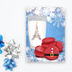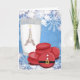 Diese Weihnachtskarte zum Thema Paris ist sowohl schön als auch niedlich. Der Hintergrund ist atemberaubend mit den Winterblautfarben und den weißen Schneeflocken. Das Design ist ein Haufen Weihnachten, der Weihnachtsmann hat Makaronen vor einem Glas Milch mit einem Eiffelturm. Personalisieren Sie die Innenseite der Karte einfach mit jeder Urlaubsnachricht, die Sie senden möchten.