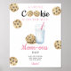 Ein kleiner Keks ist unterwegs! Milch und Cookies Baby Dusche. Party mit Duschkabine. Aquarellkekse mit Schokolade und Glas Milch mit rosa Stroh.