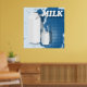 Ein Glas Milch und ein Milchkarton. Dieses Design sieht wirklich effektiv aus auf diesem Poster